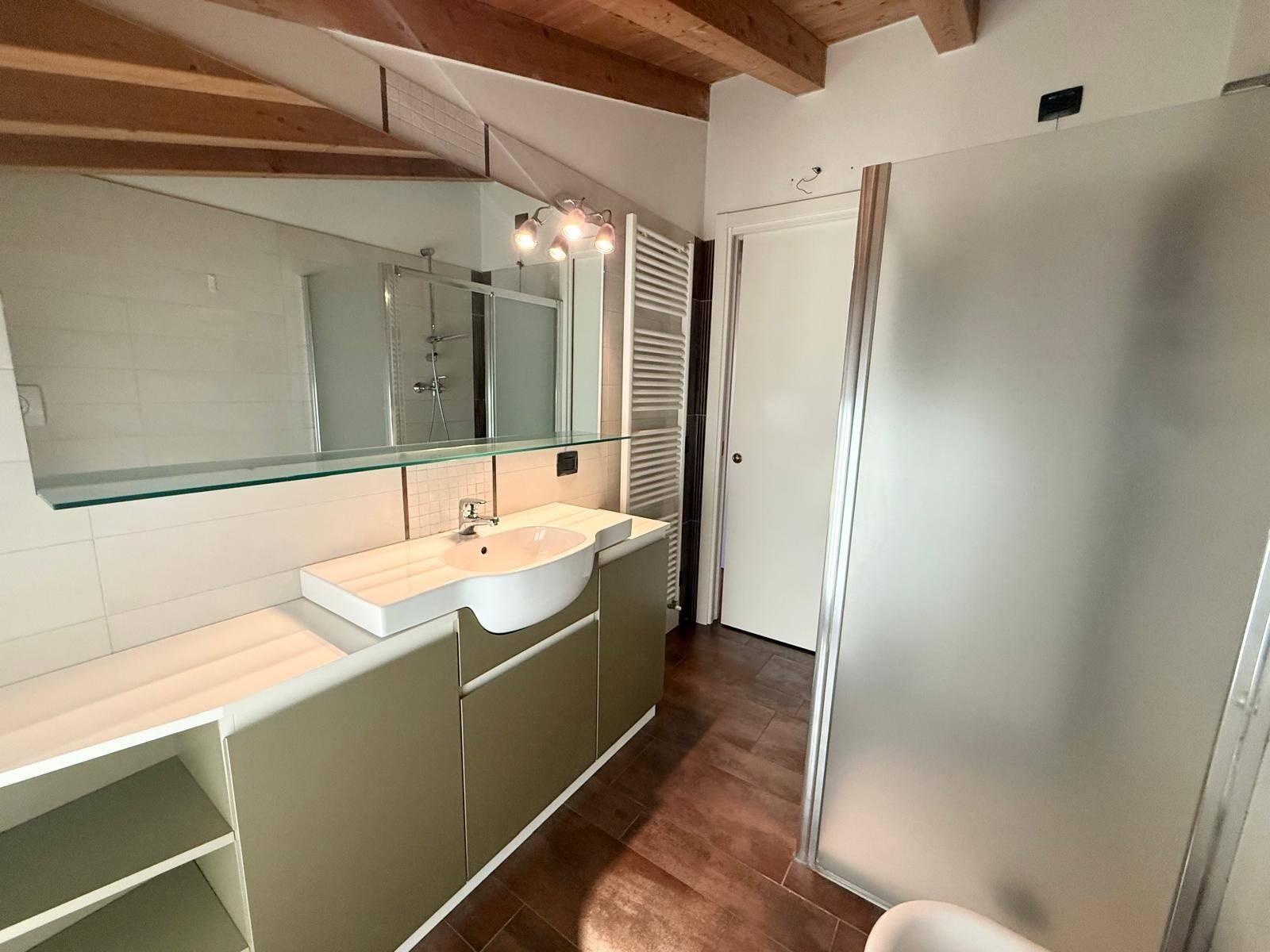A terra troviamo parquet in ogni ambiente, esclusi i bagni pavimentati in ceramica, i soffitti mostrano delle splendide travi in legno, il riscaldamento è autonomo e l'impianto di raffrescamento è già stato installato.