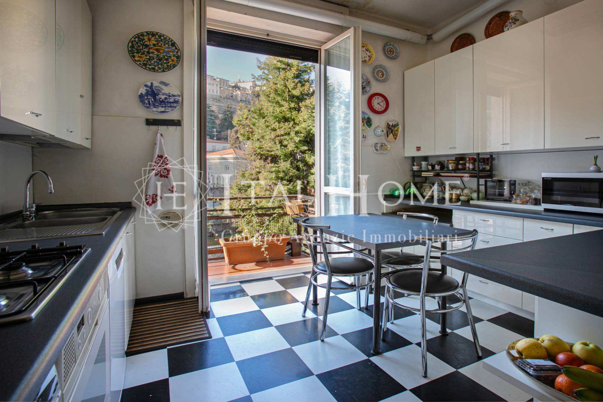 L'appartamento, libero su 3 lati, si trova al 2' piano e gode di una spettacolare vista di Città Alta con affacci, a dir poco, da cartolina.