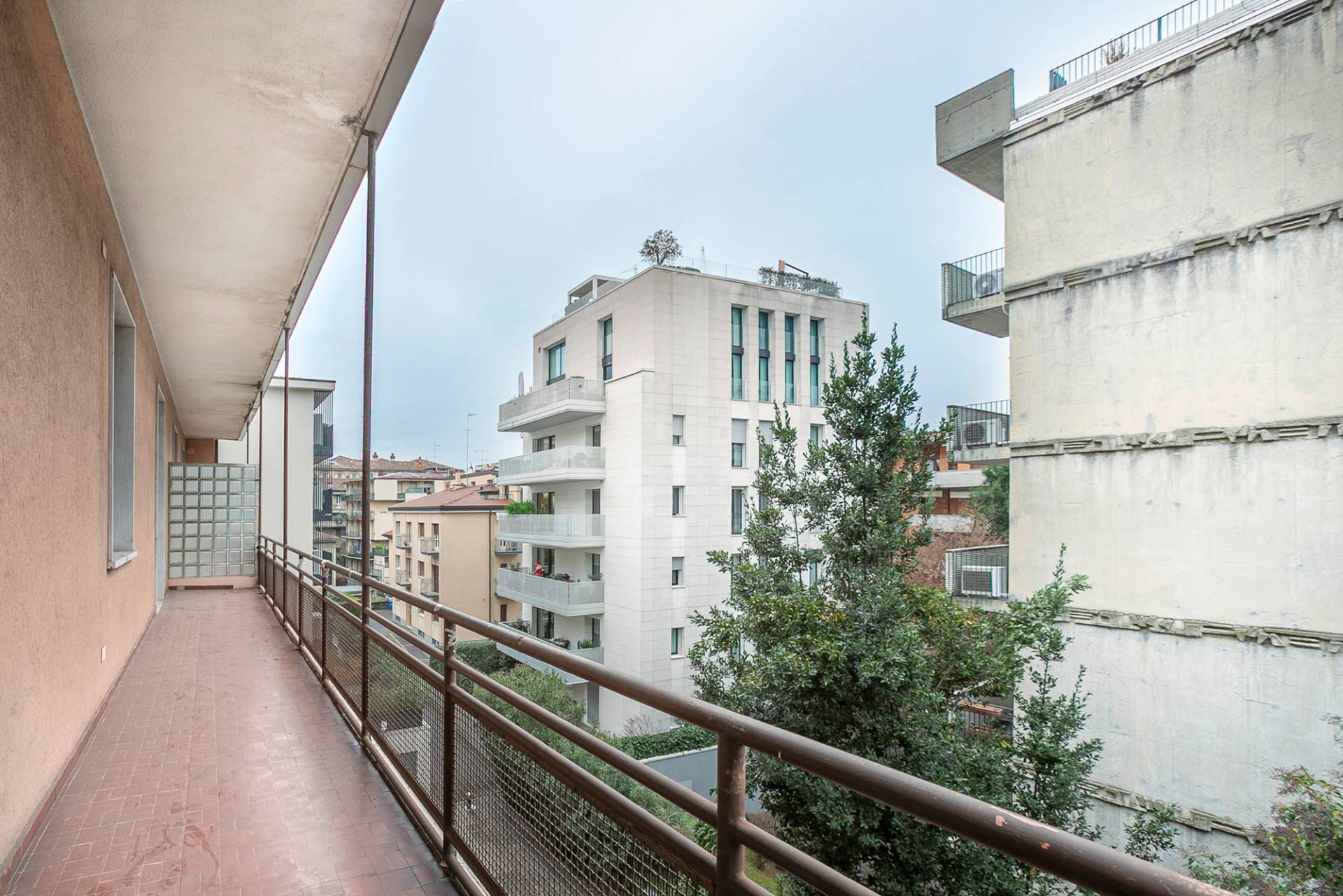 Completano la proprietà le pertinenze esterne, costituite da un terrazzo e due balconi, per un totale di 30mq, oltre alla cantina, al solaio e ad un'autorimessa, molto ampia, quasi doppia.