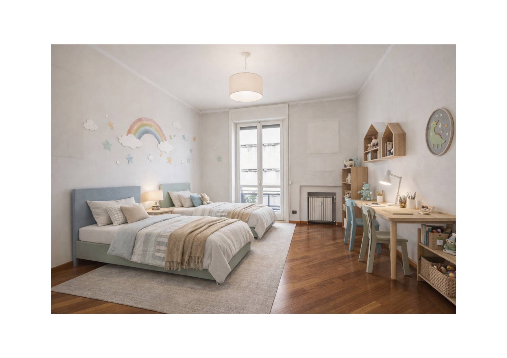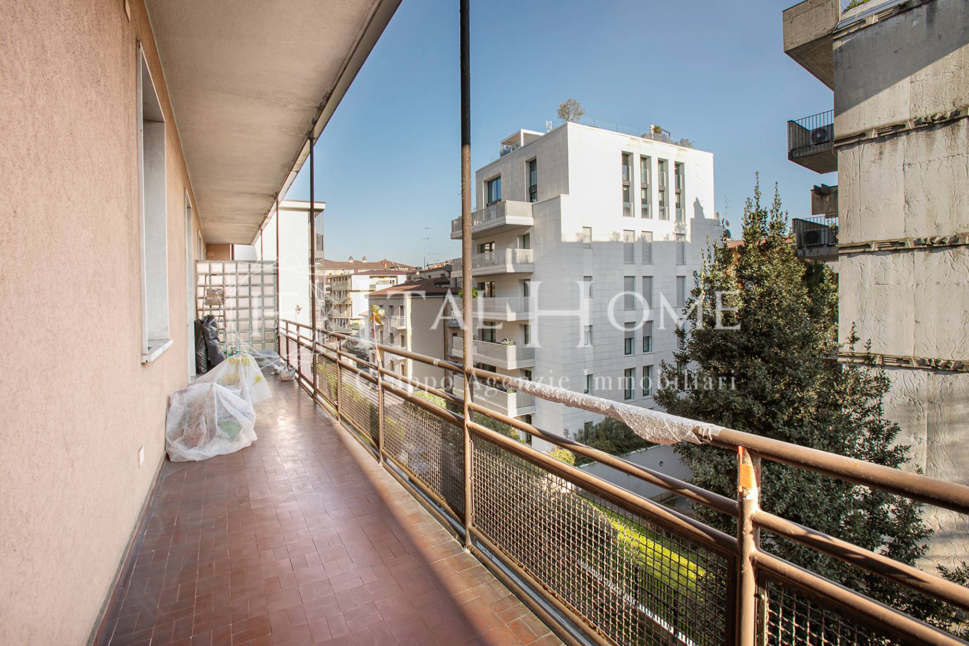 Completano la proprietà le pertinenze esterne, costituite da un terrazzo e due balconi, per un totale di 30mq, oltre alla cantina, al solaio e ad un'autorimessa, molto ampia, quasi doppia.