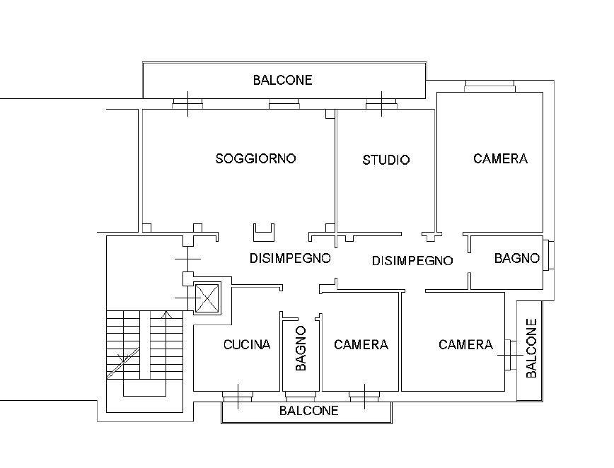 Internamente troviamo: ingresso, salone doppio, cucina abitabile, disimpegno notte, 3 camere da letto matrimoniali, una camera singola e due servizi, entrambi finestrati, uno servito di doccia e l'altro di vasca da bagno.