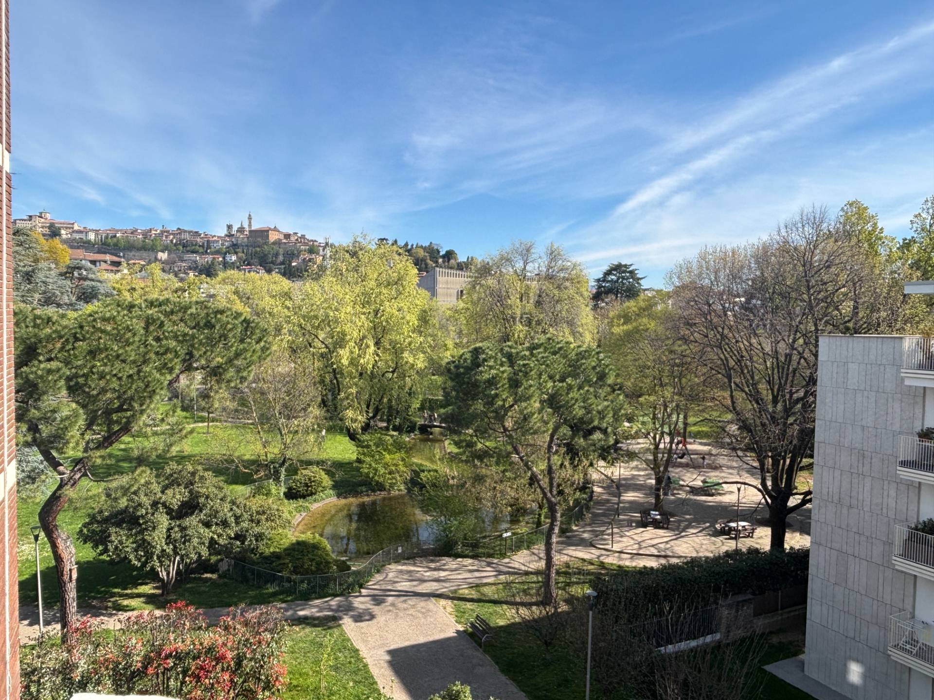 Bergamo centro, a soli 500mt da Piazza Pontida, affacciato al Parco Locatelli, proponiamo in vendita ampio, panoramico, luminoso trilocale posto a piano alto servito d'ascensore.