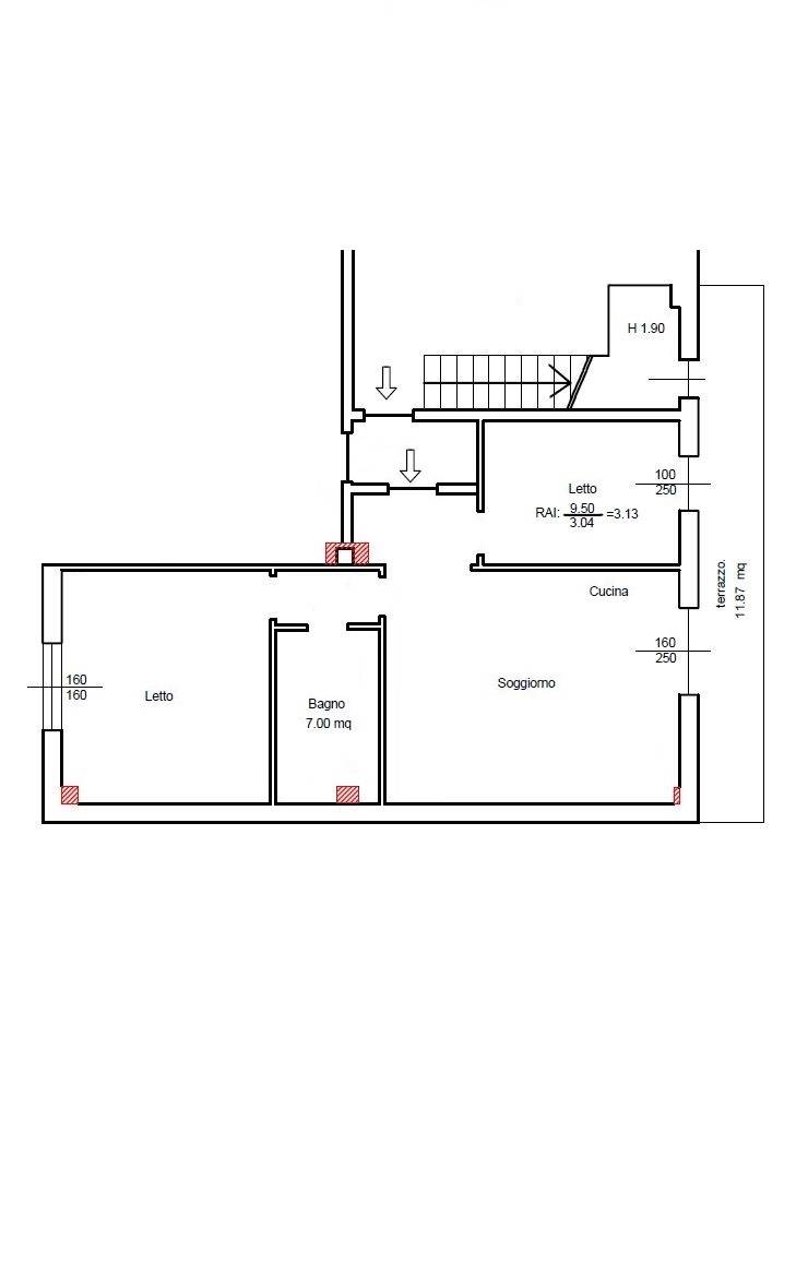 L'immobile si compone internamente di: ampio ingresso, salone con cucina, disimpegno notte, due camere da letto e un grande bagno, oltre alla spaziosa terrazza che corre su di un intero lato della casa.