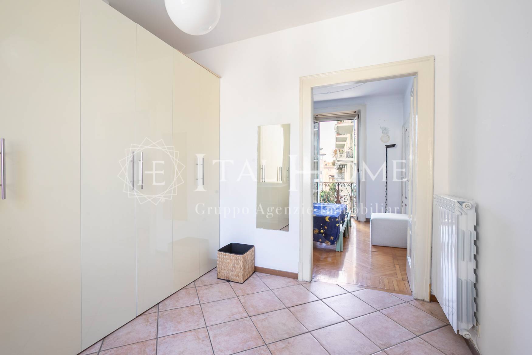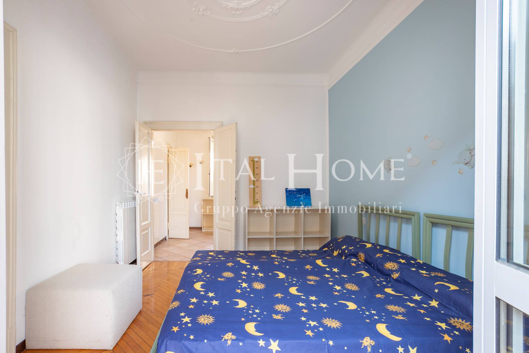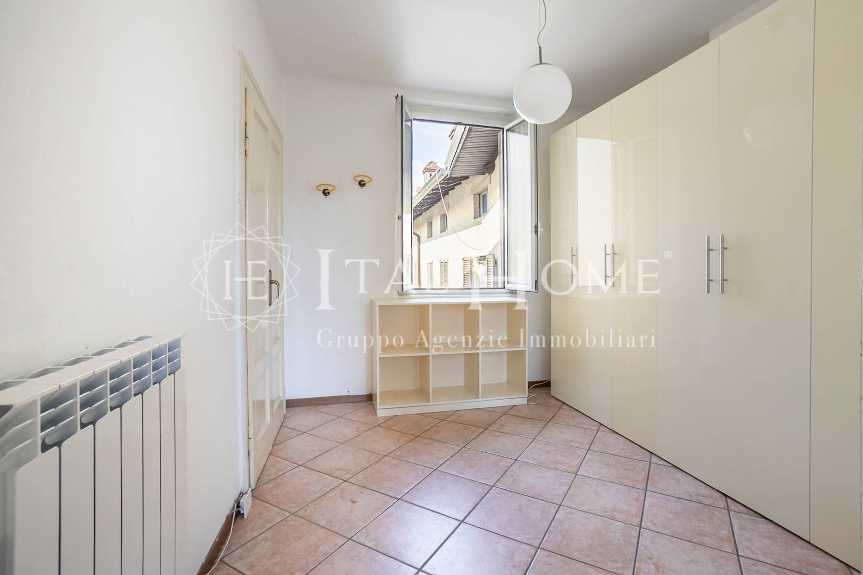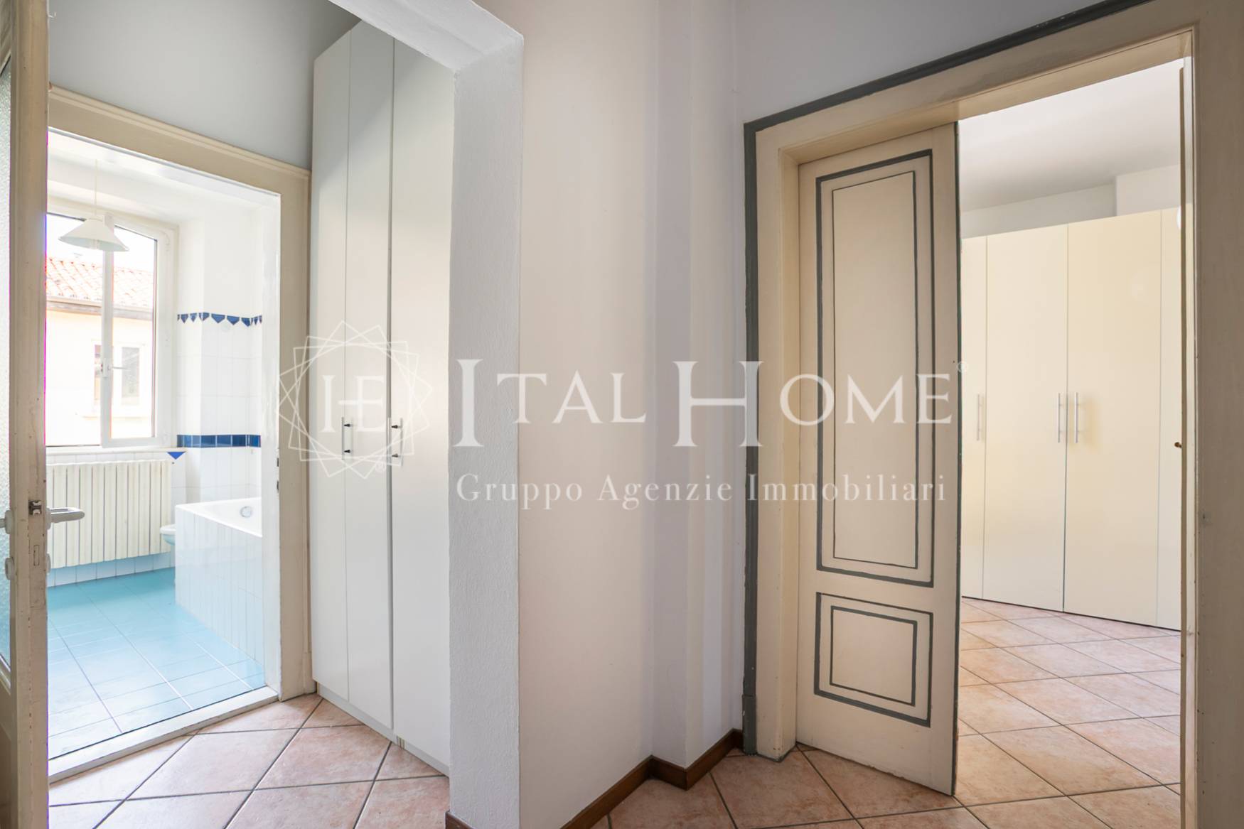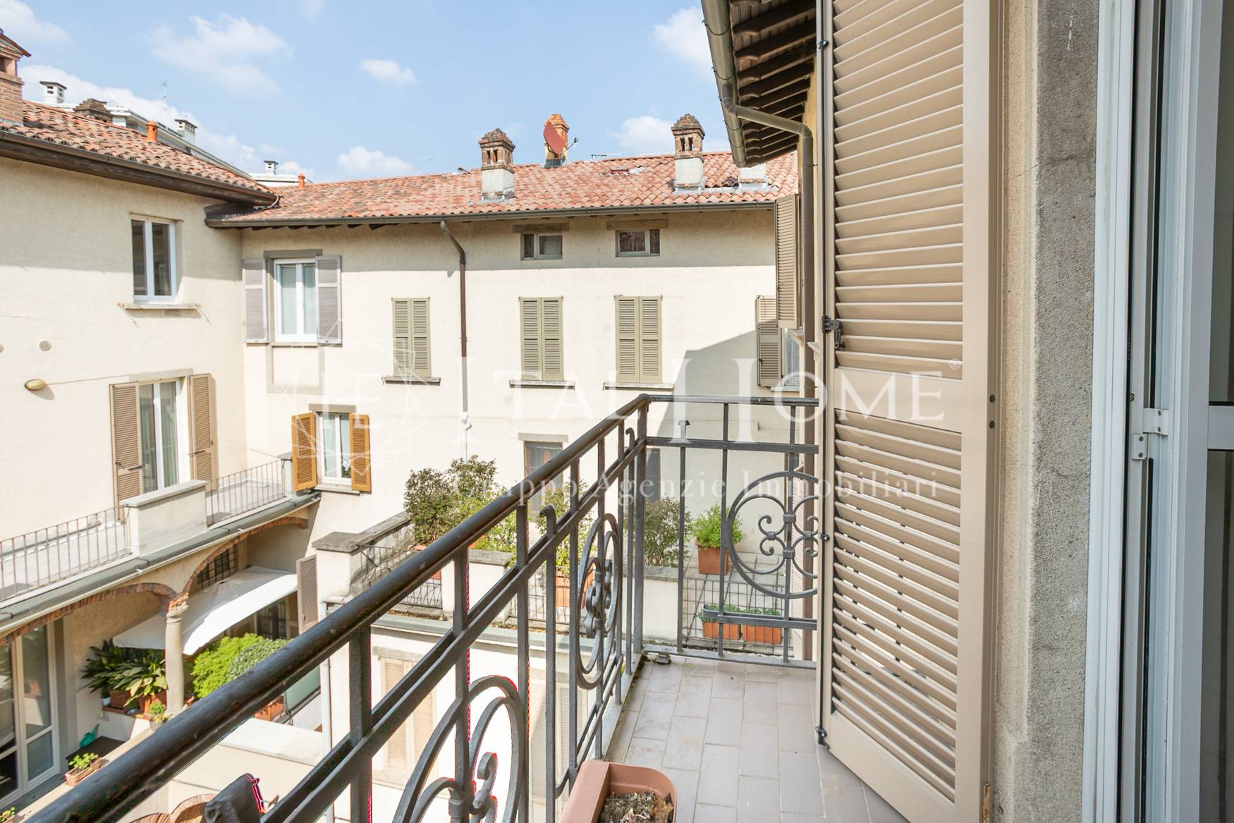 L'immobile, completo di due romantici balconi e di un solaio, si suddivide in: salone, cucina, disimpegno notte, uno spazioso servizio finestrato composto da antibagno e bagno e due camere da letto matrimoniali, una delle quali servita da un ampio studio affacciato alla corte, adatto ad ospitare anche una cabina armadio; nota di valore, essendo esposto a Sud/Est da un lato e a Nord/Ovest dall'altro, il sole lo bacia per tutto l'arco della giornata.