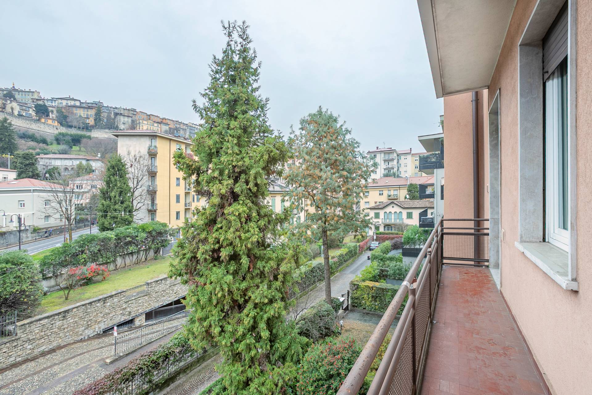 L'appartamento, libero su 3 lati, si trova al 2' piano e gode di una spettacolare vista di Città Alta con affacci, a dir poco, da cartolina.