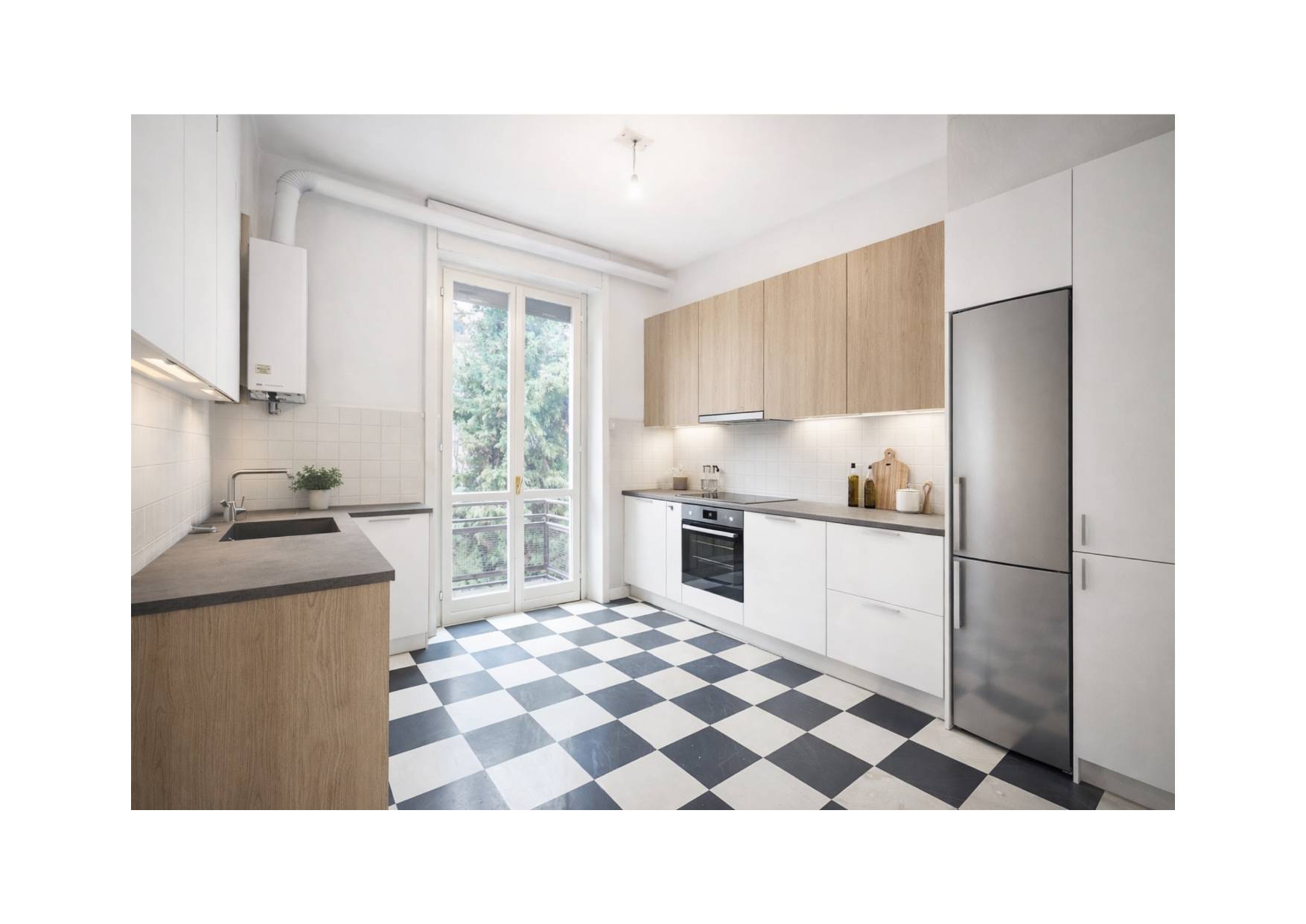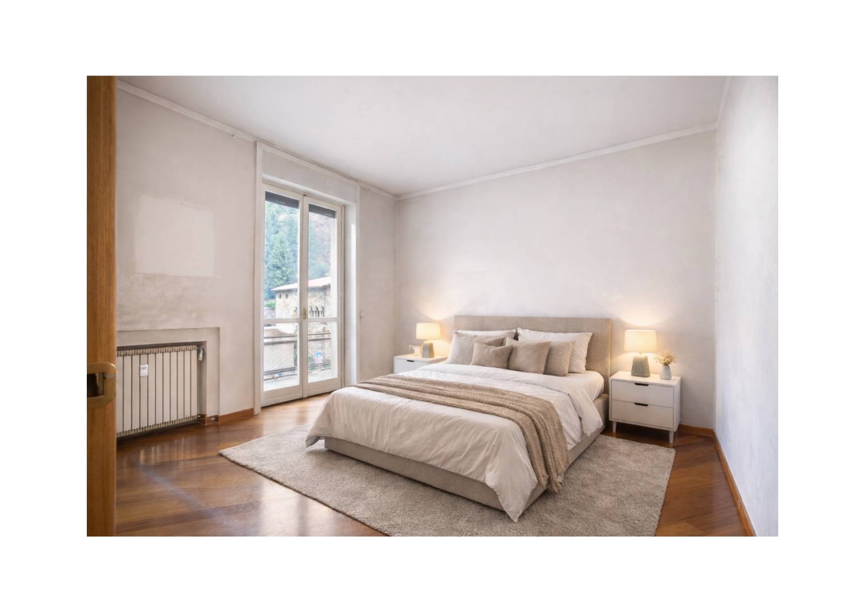 Completano la proprietà le pertinenze esterne, costituite da un terrazzo e due balconi, per un totale di 30mq, oltre alla cantina, al solaio e ad un'autorimessa, molto ampia, quasi doppia.