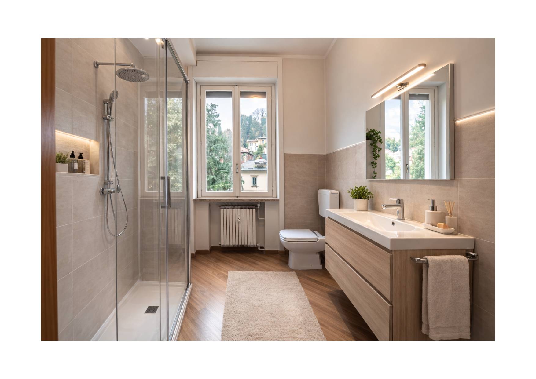 L'appartamento, libero su 3 lati, si trova al 2' piano e gode di una spettacolare vista di Città Alta con affacci, a dir poco, da cartolina.